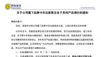 關(guān)于公司屬下品牌卡芬達(dá)家居及各子系列產(chǎn)品調(diào)價的通知